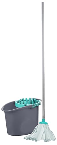 Leifheit Clean Twist M Ergo Mop and Bucket Set, Spin Mop with Static Plus Wiper Cover, Easy-steer Microfibre Head, 33 cm Wide, Turquoise