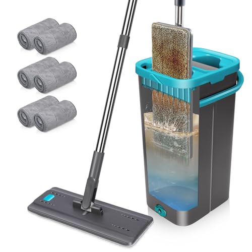 JOYMOOP Mop and Bucket with Wringer Set, Flat Mop and Bucket, Wet and Dry, Includes 5 Reusable Microfiber Mop Pads, Ideal for Hardwood, Laminate Wood Flooring and Tile Cleaning