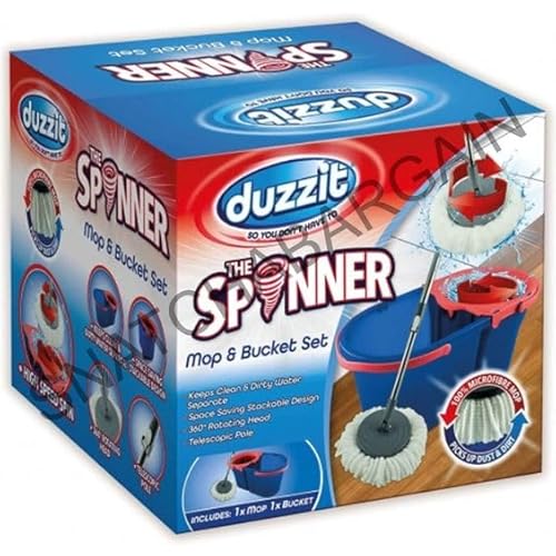delka Spin Mop and Bucket Set – Easy Foot Pedal Water Removal, 360° Swivel Motion, Includes 2 Microfibre Mop Heads, All-Surface Cleaning, Splash Guard for Clean Mopping – Mop and Buckets Sets