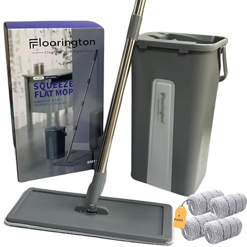 FLOORINGTON Floor Mop and Bucket Set Easy Flash Speed Mop with Squeeze Bucket Flat Mop for Floor Cleaning Includes 4 Washable Microfiber Pads. SM11