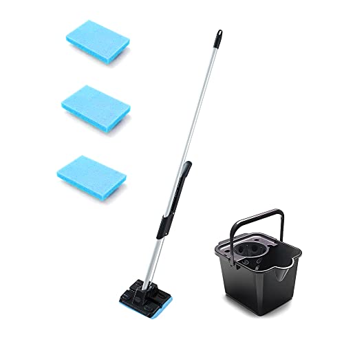 JOYMOOP Mop and Bucket with Wringer Set for Home, Flat Mop and Bucket System, Mops for Floor Cleaning and Wall Cleaner, with 3 Reusable Microfiber Mop Pads