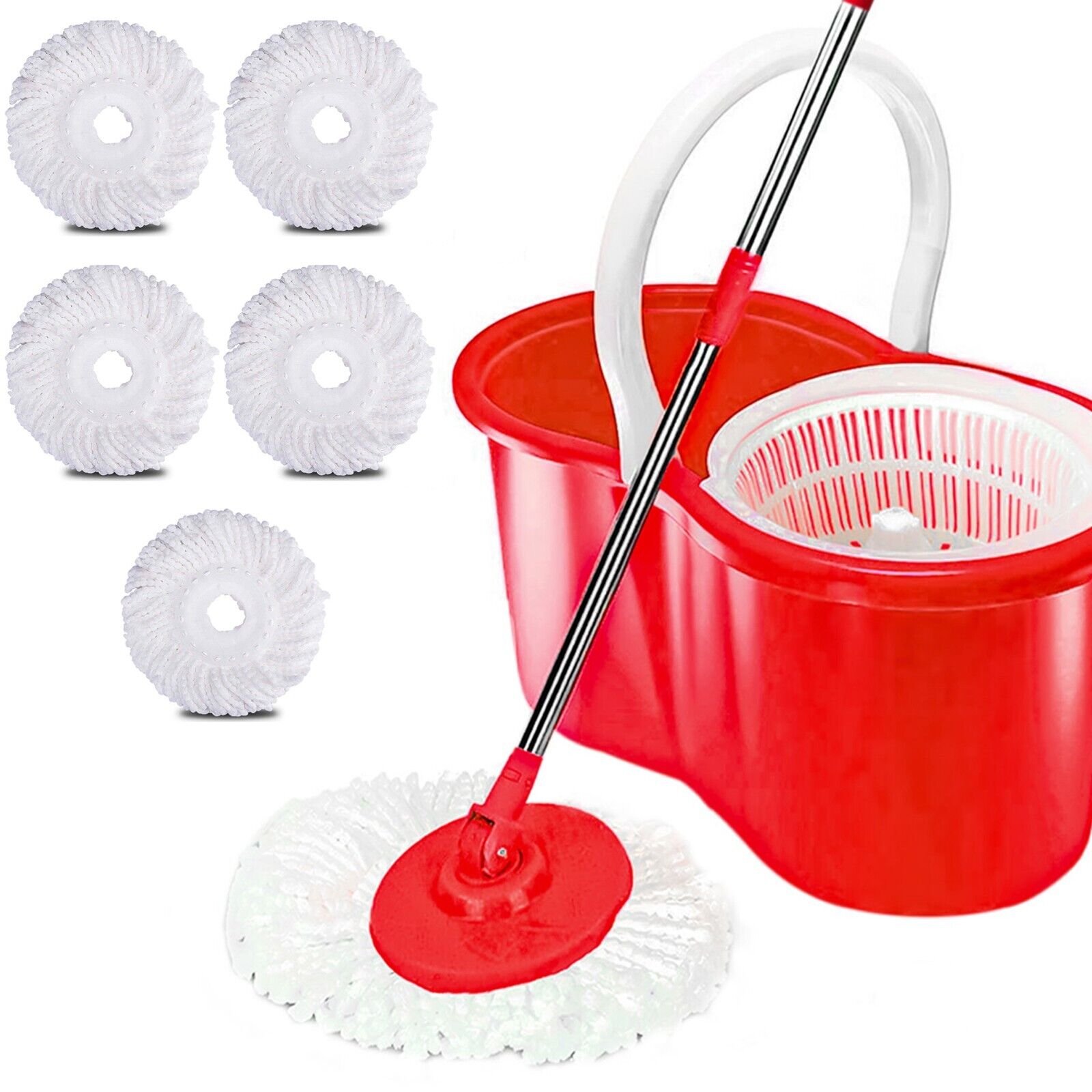 SPIN MOP BUCKETS 360° SPINNING 5 EXTRA MOP HEAD HOME CLEANING POLE HOLDER