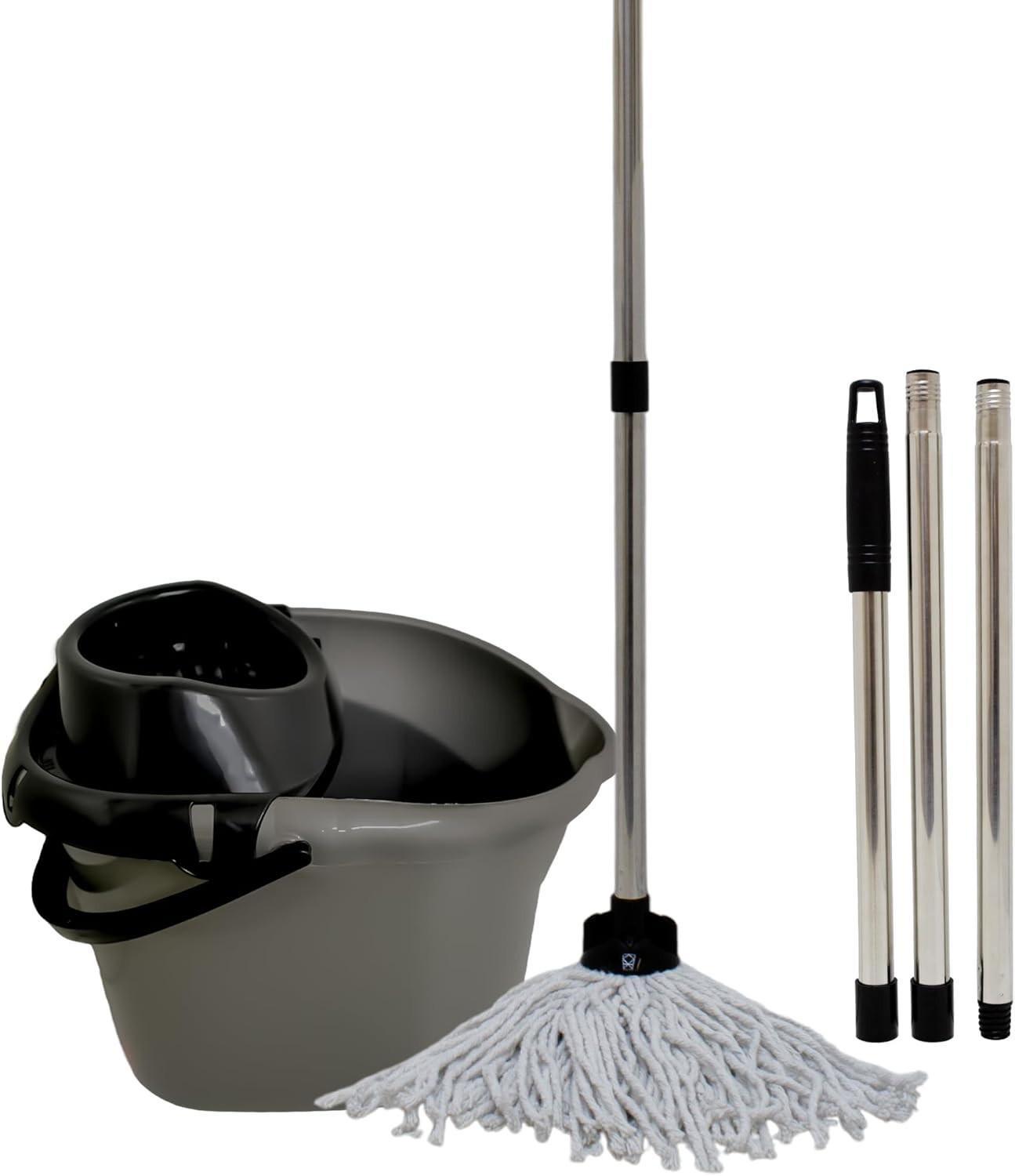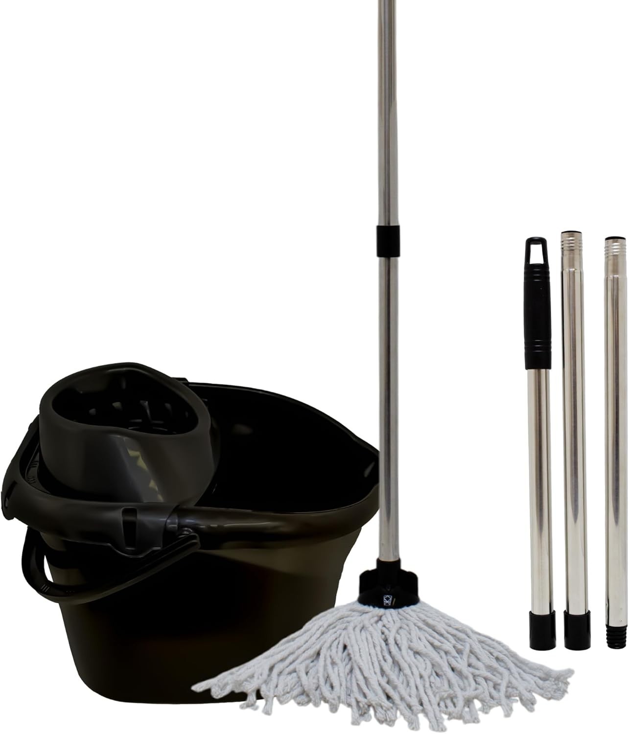 Black Heavy Duty Mop and Buckets Sets with Detachable Wringer- Classic Plastic M