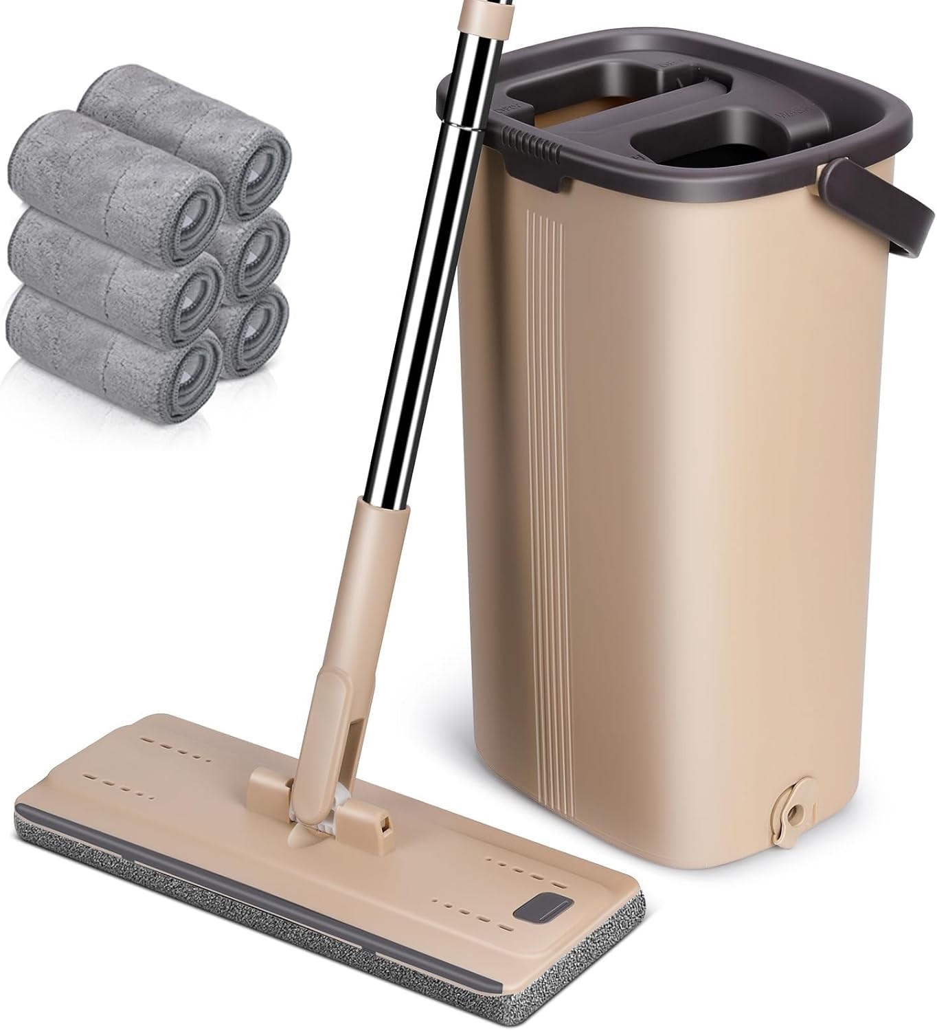 MASTERTOP Flat Mop and Bucket Set with 140cm Stainless Steel Handle&6 Pcs Super Absorbent Pads,Compact Lightweight 2-in-1 Mop Bucket for Floor Cleaning, Mop and Buckets Sets with Wringer