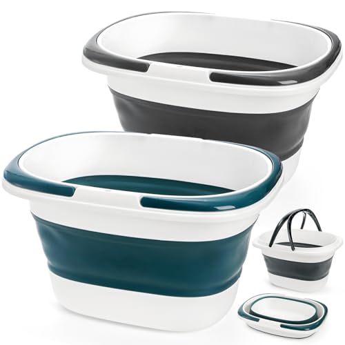Coloch 2 Pack 16L Collapsible Plastic Bucket, Foldable Mop Buckets Laundry Basket with Handle, Portable Water Pail Space-saving Bucket for House Cleaning, Car Washing, Fishing, Camping