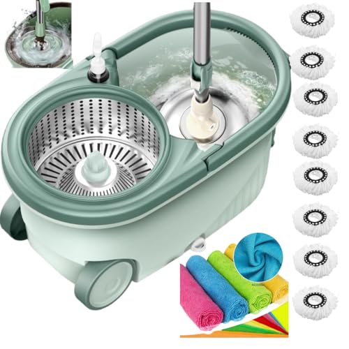 SWISSPACK Ultimate Heavy Duty Spin Mop and Buckets Sets, Microfibre Flat Mop Bucket, Telescopic Handle & 2 Reusable Pads for Hardwood Laminate Tile Floors - Microfibe Cloths Included (green)