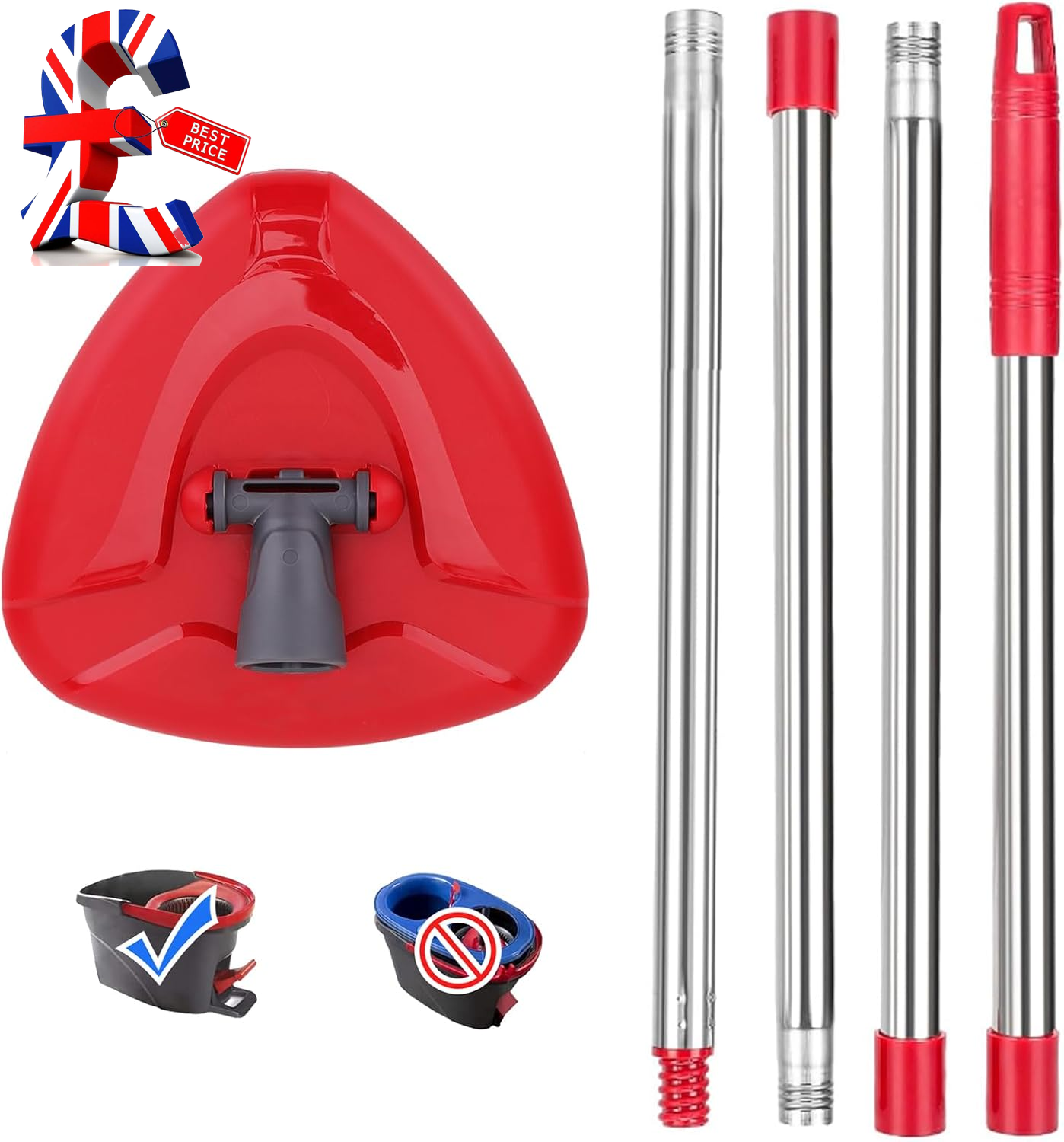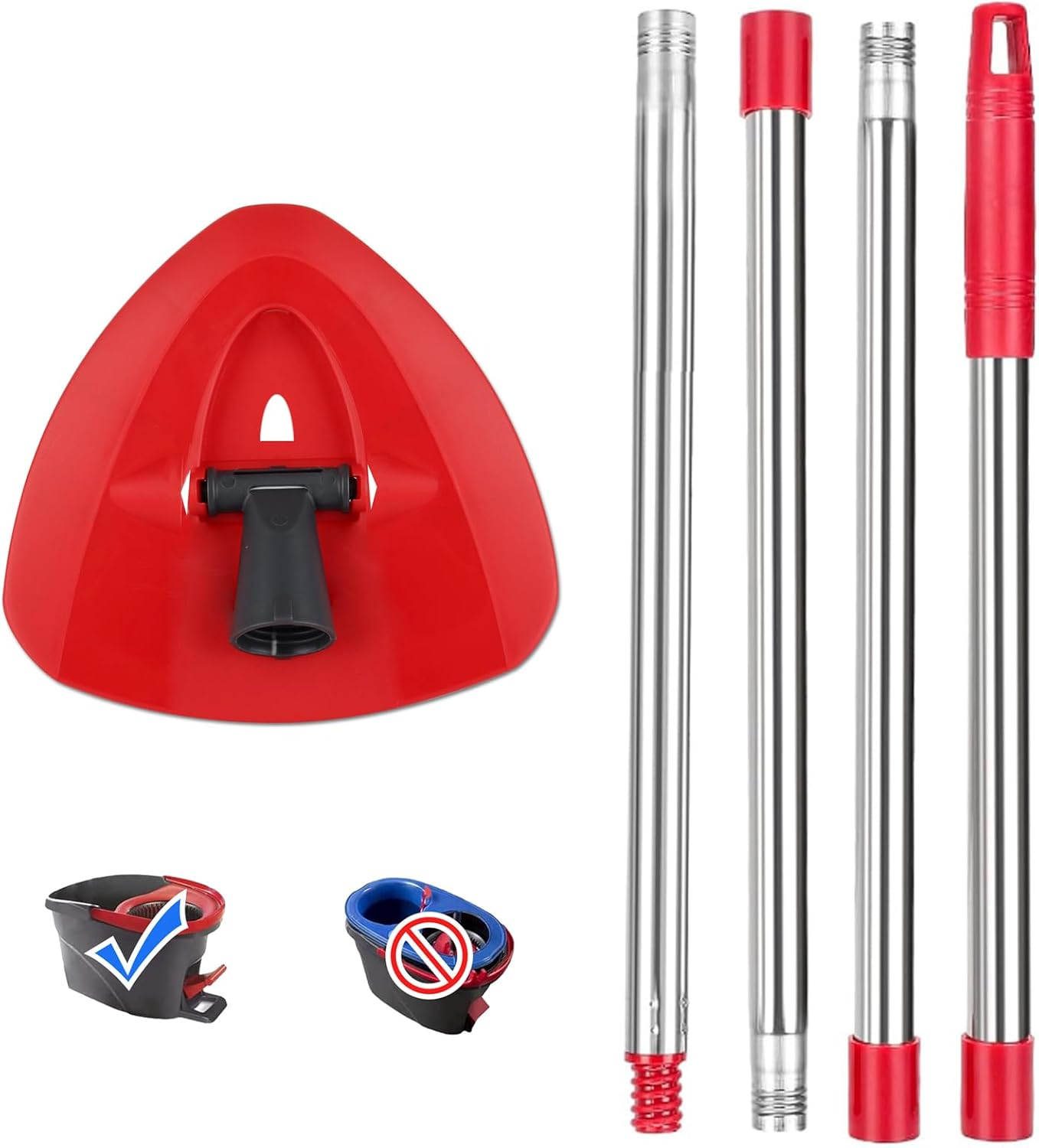 Red Spin Mop Head Base with Handle for Vileda Turbo Spin 2in1,3in1 Mops Refill Replacement,Triangular Spin Base for Turbo Smart/EasyWring&Cleaning Mop Accessory - Not Include Mops Head Cloth