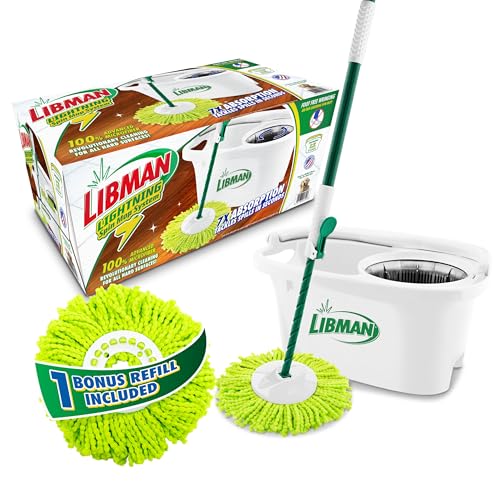 Libman Lightning Spin Mop System Plus 1 Refill Head | Mop and Bucket with Wringer Set | Floor Mop | Spin Mop | Libman Mop | Mops for Floor Cleaning | Hardwood Floor Mop | 2 Total Mop Heads Included