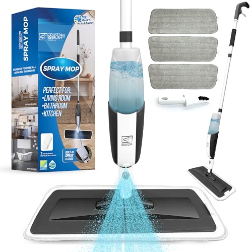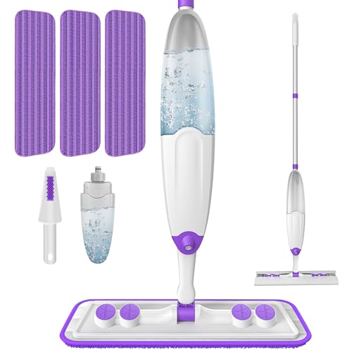 Spray Mop with Washable Pads Floor Mop with Spray, 360° Swivel Head, Wet and Dry, Free Scraper and 3 Microfibre Replacement Head Pads - Mops for Cleaning Floors, Floor Mops for Tiled Floors