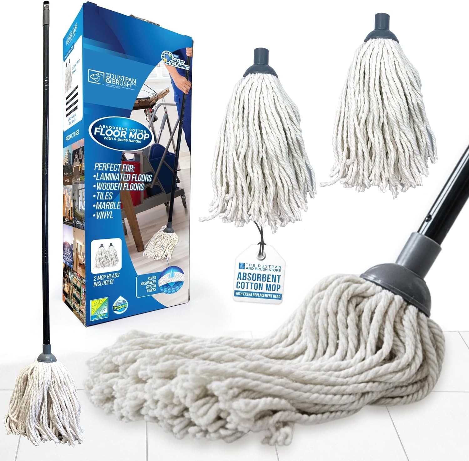 Cotton Floor Mops Mop System with Super Absorbent Cotton Head, 110cm Metal Hand