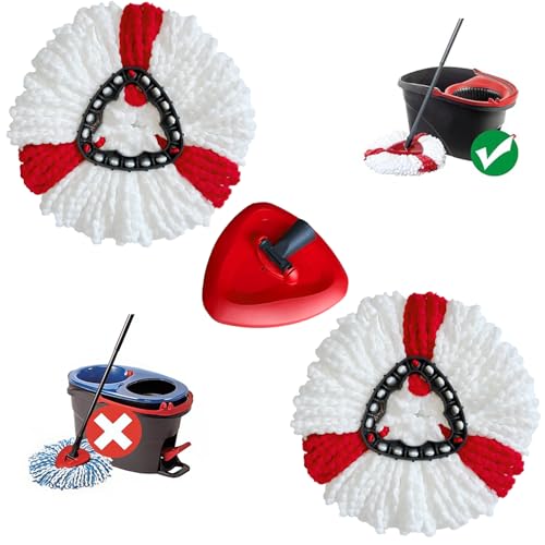 Mop Head Replacement Compatible with EasyWring 1-TANK system, 2 Pack Spin Mop Heads Refills with A Base Replacement Kit for Turbo Triangle Swivel Mops, Microfiber, Machine Washable