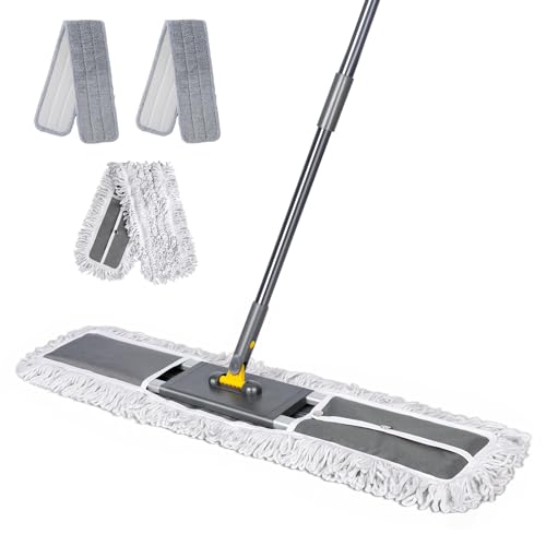 Masthome Industrial Mop, 36'' Large Commercial Dust Mops with 360° Swivel Head & 3 Reusable Washable Pads, Heavy Duty Flat Mop with 61'' Telescopic Handle for Warehouse, Office, Hotel and Home Floors