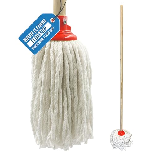 Highly Absorbent Mops for Cleaning Floors - Cotton Floor Mop Cotton Mop Head, Wooden Handle, and Durable Bracket - Versatile Cleaner and Handle for Floor Cleaning