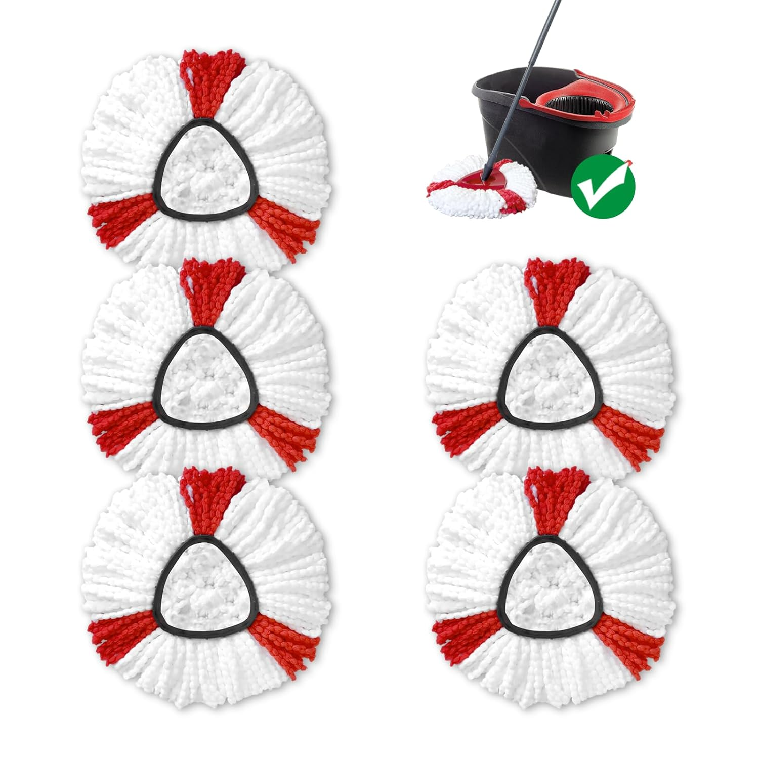 Mop Head Replacement, 5 Pack Mop Head Compatible for Triangle Swivel Mops, Microfiber, Deep Cleaning, Machine Washable and Easy to Replace(Red-White)