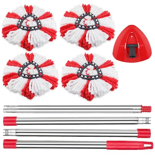 Sgizoku 6 Pack Turbo 2in1 Mop Head Refill Kit for Viledar Turbo Spin/Smart/EasyWring&Clean 1 Tank Bucket Mops Replacement,4Red Striped Mop Refills+1Mop Base+1Mop Handle,Removal of Over 99% of Bacteria