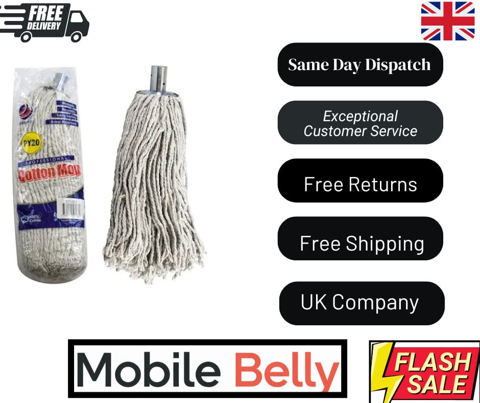 PY20 Mop Head With Push Fit METAL 18oz Socket Fits Shafts Professional Cotton