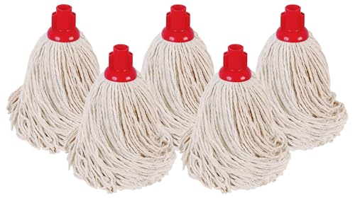 Red Disposable Cotton Mop Head Replacements PY Yarn Traditional String Mop Heads Self Threaded Socket Screw Mop Head - Colour Coded - (Pack Of 5) (Red)