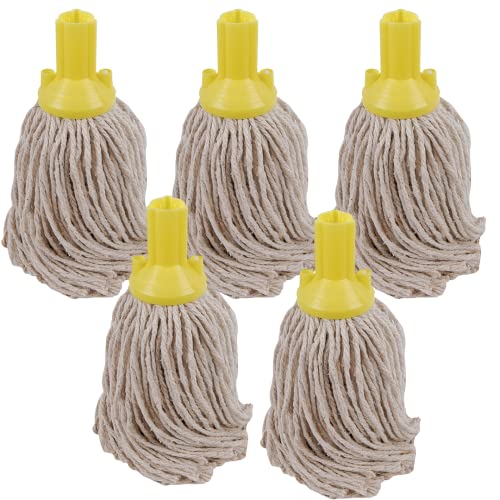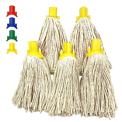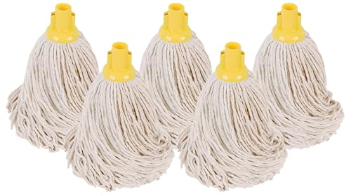 Abbey No.16 Socket Cotton Mop heads Replacement Pack of 5 – Super Absorbent String Mop Universal Screw On Socket - Floor Cleaning Heavy Duty mop head ( Yellow )