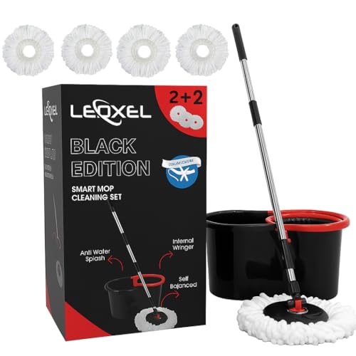 Requisite Needs Smart Spin Mop and Bucket Set – Black edition – Anti-splashing Strong And Sturdy Material – Easy Floor Moping System – 1x Bucket + 3 Replacement Mop Heads – 13 Liter (Mop + Bucket)