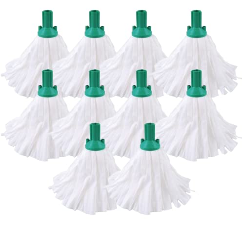 Avern Exel Mop Heads BIG White Push Socket Fit Mop Heads (Pack Of 10) Disposable Super Absorbent Heavy Duty Mops - Colour Coded - Robert Scott (Green (10 Pack))
