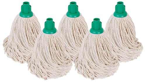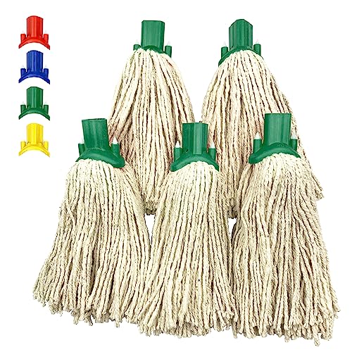 Red Disposable Cotton Mop Head Replacements PY Yarn Traditional String Mop Heads Self Threaded Socket Screw Mop Head - Colour Coded - (Pack Of 5) (Green)