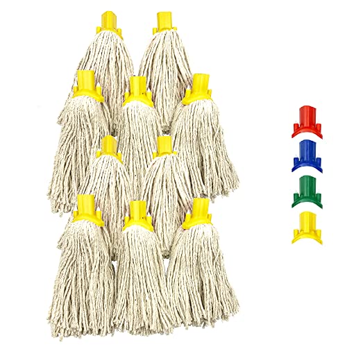 Mop Heads Replacement, Colour Coded Self Threading Socket Cotton Mop Head No.12 PY (Yellow, Pack of 10)