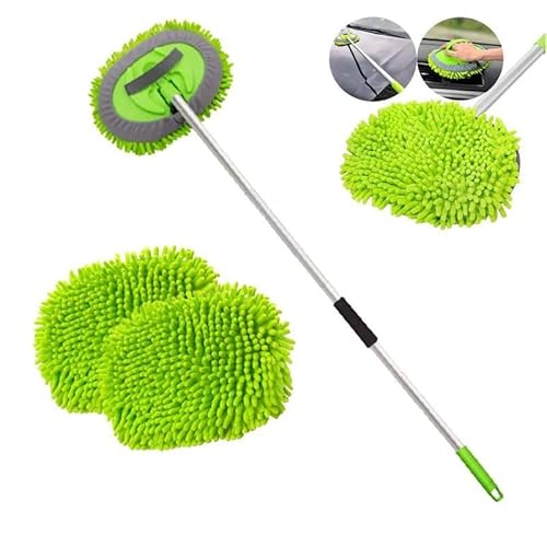 Bemece Car Wash Brush Kit with 43.3" Telescopic Handle, Car Washing Brush with 2 in 1 Chenille Microfiber Mop Heads for Cleaning Truck, Caravan, Scratch Free(1 Car Wash Brush,1 Replacement Cloth Head)