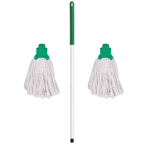 Professional Colour Coded Mop Handle and 2 Mop Heads (Green)