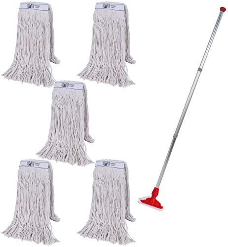 Abbey Py Cotton Kentucky Mop Heads Pack of 5 – Replacement Mop Heads for Hard Floor Cleaning - Industrial Mop Heads Thick Yarn for Large Areas – Commercial Mop Head 16oz for Wet & Dry Floors - 450g