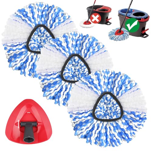 Sgizoku H2PrO Mop Heads with Spin Mop Base Compatible with Viledar/O-cedars H2PrO RinseClean 2Tank Mops Replacement Refills: 3PCS Microfiber Clothes Refills+1PCS Triangle Base