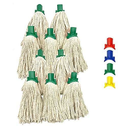 Mop Heads Replacement, Colour Coded Self Threading Socket Cotton Mop Head No.12 PY (Green, Pack of 10)