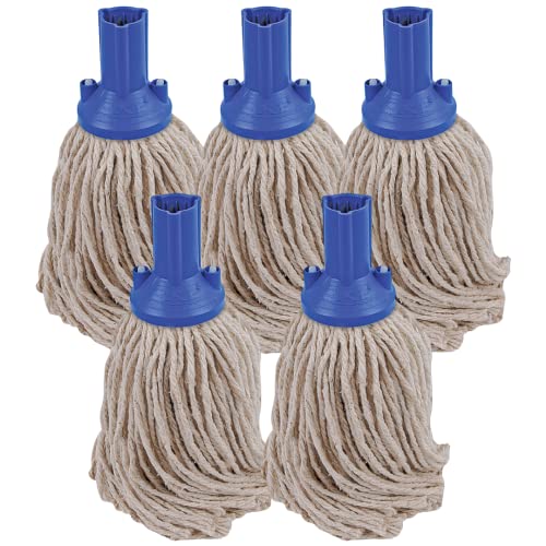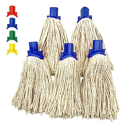 Abbey No.16 Socket Cotton Mop heads Replacement Pack of 5 – Super Absorbent String Mop Universal Screw On Socket - Floor Cleaning Heavy Duty mop head ( Blue )