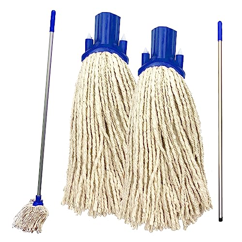 Floor Mop Handle with 2 Mop Heads Set – 120cm Long Aluminium Handle and Pack of 2 String Heads Replacement Cleaning (Blue)