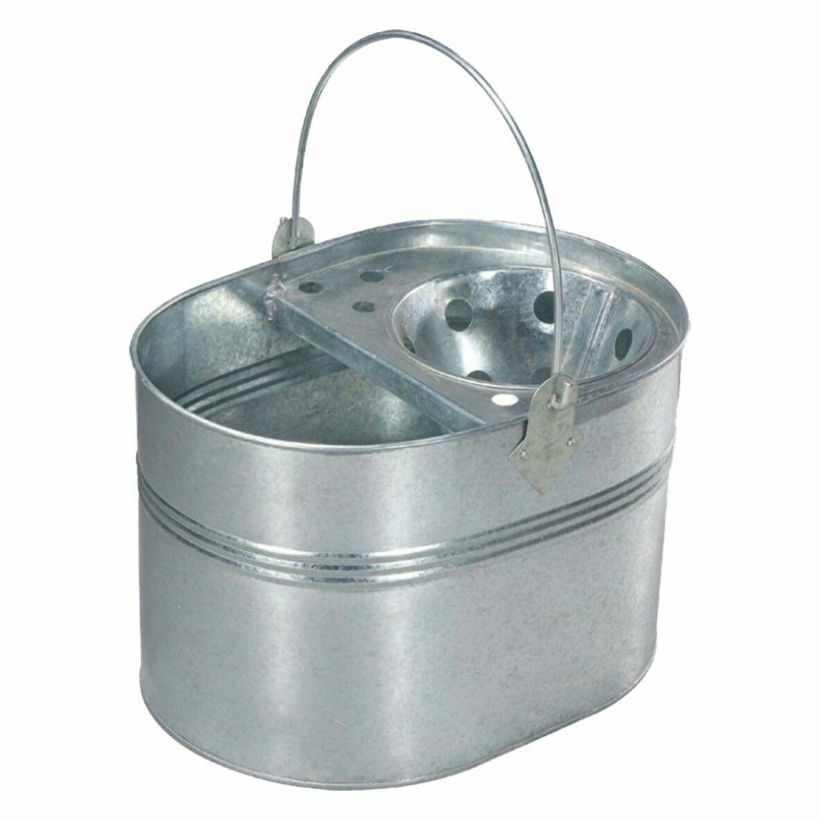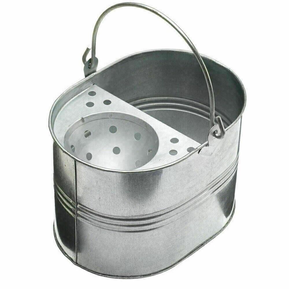 Vintage Galvanised Metal Pail Heavy Duty Mop Bucket 15L Durable Wringer Steel UK