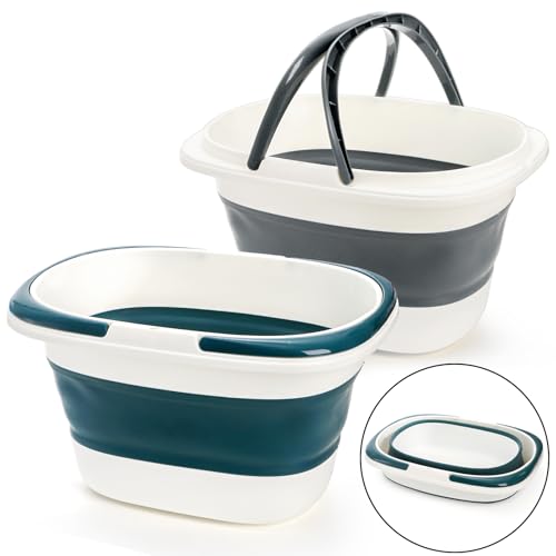 Coloch 2 Pack 16L Collapsible Plastic Bucket, Foldable Mop Buckets Laundry Basket with Handle, Portable Water Pail Space-saving Bucket for House Cleaning, Car Washing, Fishing, Camping