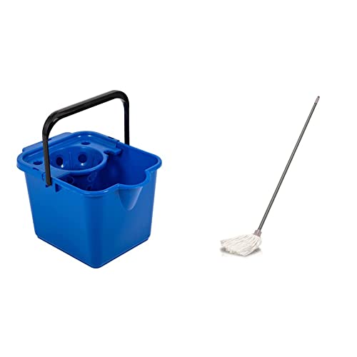 Addis Mop Pail and Wringer In Royal Blue 12L Capacity & Cotton Mop With 3 Piece Handle in Metallic and Grey. Easy To Assemble.