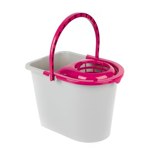 Kleeneze KL062598EU Mop Bucket – With Mop Head Wringer, Carry Handle, Plastic Water Pail, Cleaning Bucket For Floors, Detachable Wringer, Pouring Spout, Large, Strong & Durable, 14L Capacity, Pink
