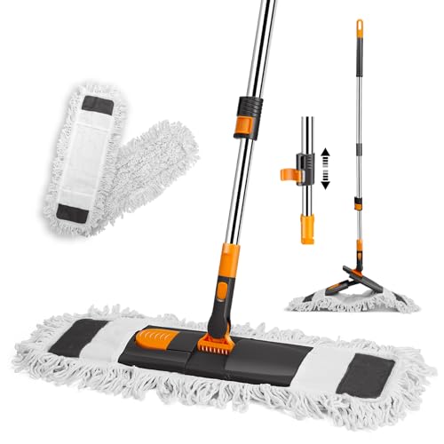 OZD Mops for Cleaning Floors, 60cm Wide Mop with Telescopic Handle (106cm - 126cm), Floor Mop for Warehouse, Hotel and Home Cleaning, Wet & Dry mops with 2 Reusable Pads