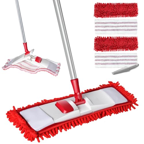 Masthome Floor Mop,Chenille Microfibre Mops for Cleaning Floors,Wet Dry Flat Mop for Hardwood Laminate Wooden Hard Floor Vinyl Tile, Free Scraper and 4 Reusable Washable Pads