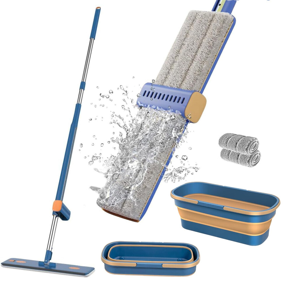 Flat Mop and Buckets Sets,Mops for Cleaning Floors with 2 Microfiber Pads and 138 cm Stainless Steel Handle,Floor Mops with Wringing Function for