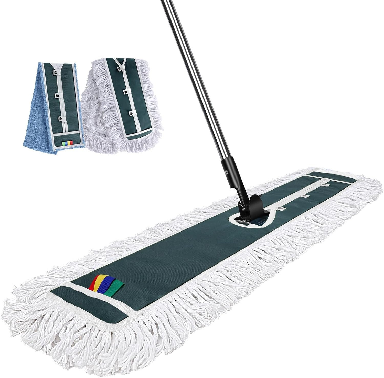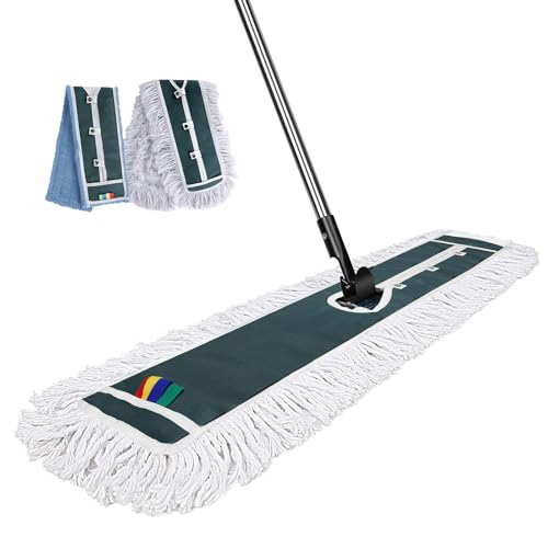 MASTERTOP Flat Mop, 60cm Wide Industrial Mops with Stainless Steel Long Handle, Commercial Pure Cotton Mop with 2 Reusable Pads, Wet and Dry Floor Mops for Hard Laminate Floors Cleaning