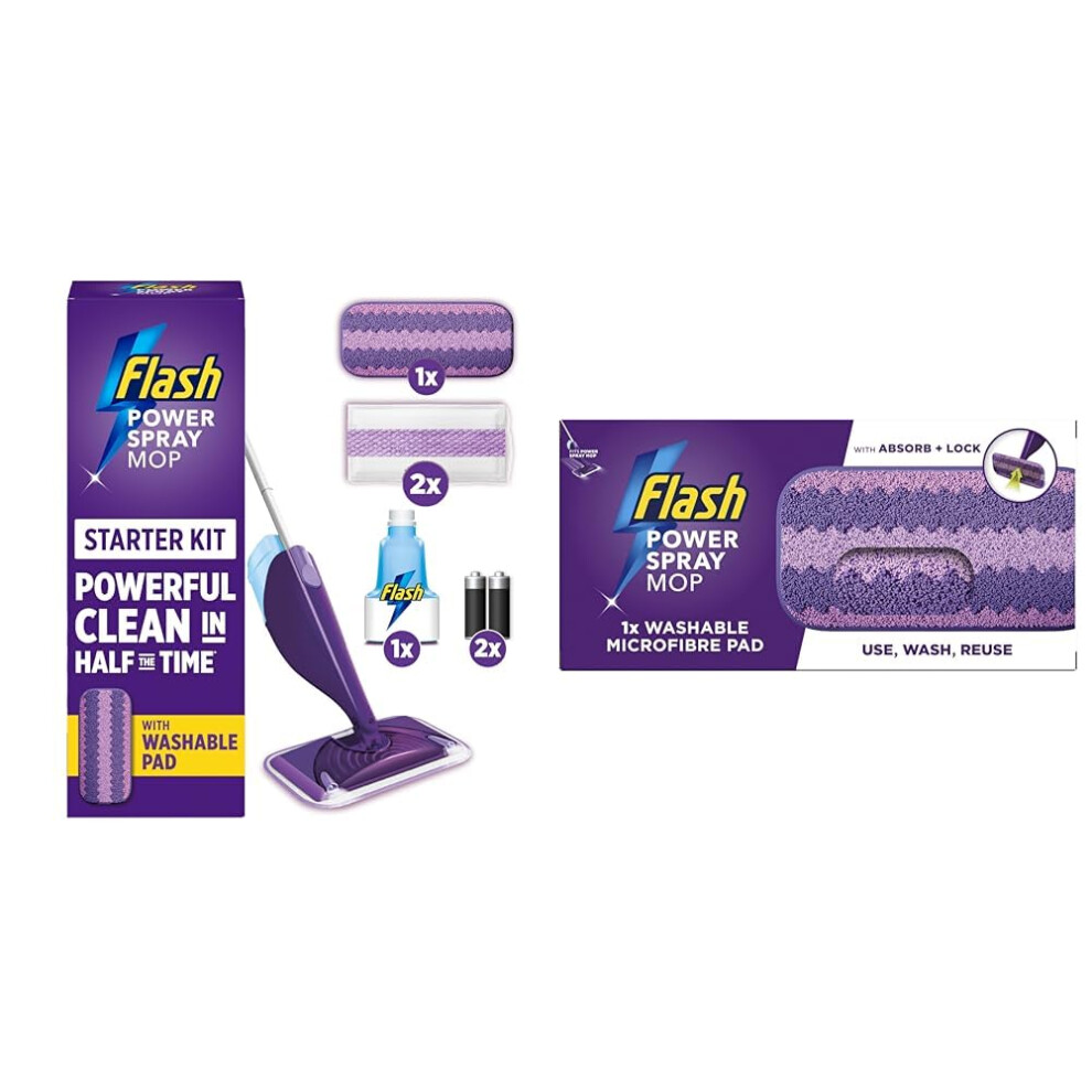 Flash Power Spray Mop Starter Kit Bundle Value Pack, 2 Washable Pads + 2 Disposable Pads, Spray Mops For Floors, All-In-One Spray System For Your Floo