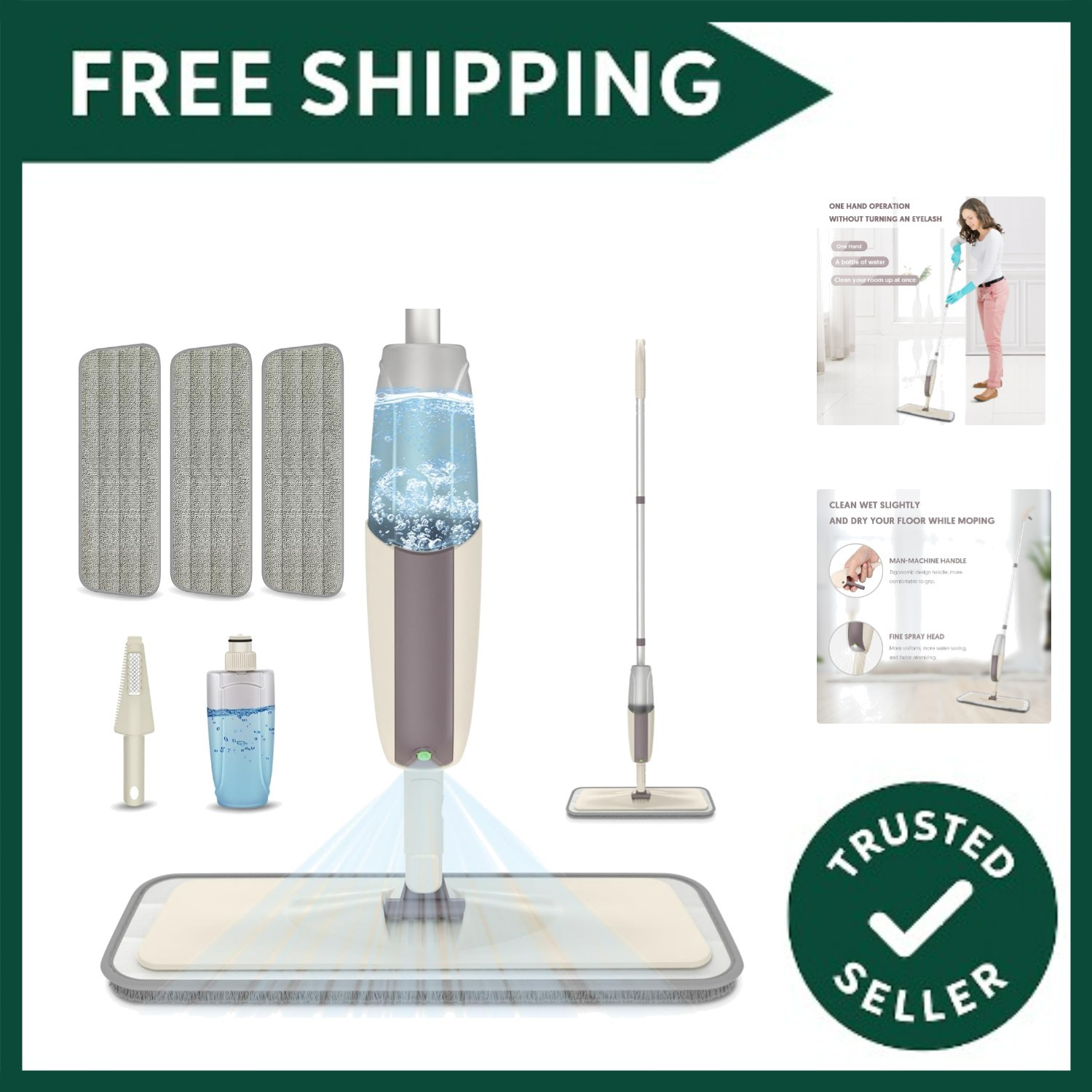 Spray Mop, Floor Cleaner, 4 in 1 Floor Mop, Mops for Cleaning Floors, Spray Mops for Floors, Floor Mops, Triple Action Pad