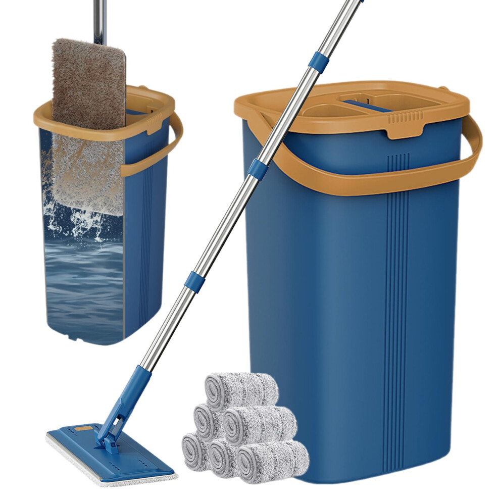 Masthome Mop and Buckets Sets, Flat Mop and Bucket Set, Microfibre Squeeze Mops for Cleaning Floors with 6pc Reusable Pads for Wet & Dry Use, Floor