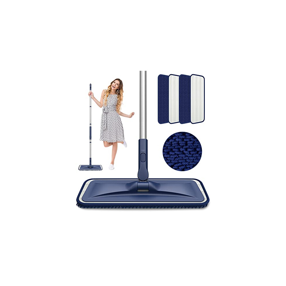 Microfibre Mops for Cleaning Floors - BPAWA Flat Floor Mop with 4 Washable Pads Reusable and Adjustable Handle, Dry Dust Mop for Hardwood Laminate Wooden Tile Vinyl Kitchen Bathroom Floors Walls
