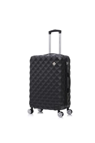 Preston Morgan Medium Suitcase on 4 Dual Spinner Wheels Super Lightweight ABS Hard Shell Hold Check in with Built-in TSA Lock (Black, 75L)
