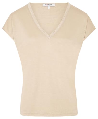 Morgan Short-Sleeved T-Shirt, Beige, UK 4