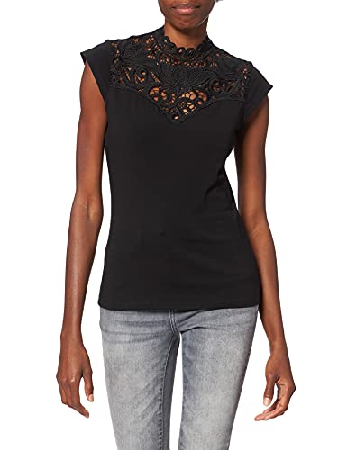 Morgan Short-Sleeved Lace T-Shirt, Black, UK 4