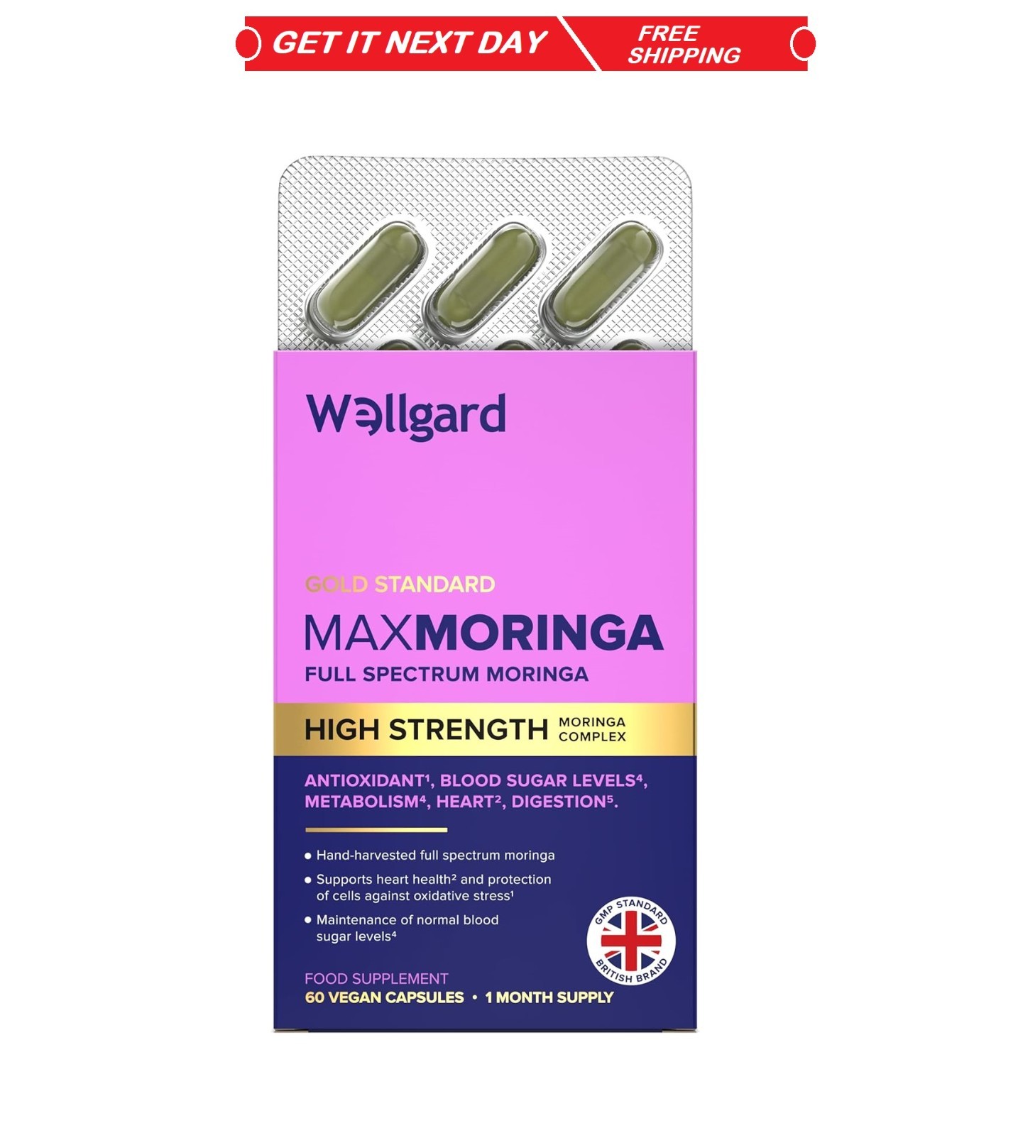 Wellgard Moringa Capsules - Supports Blood Sugar Balance 60 Vegan Capsules