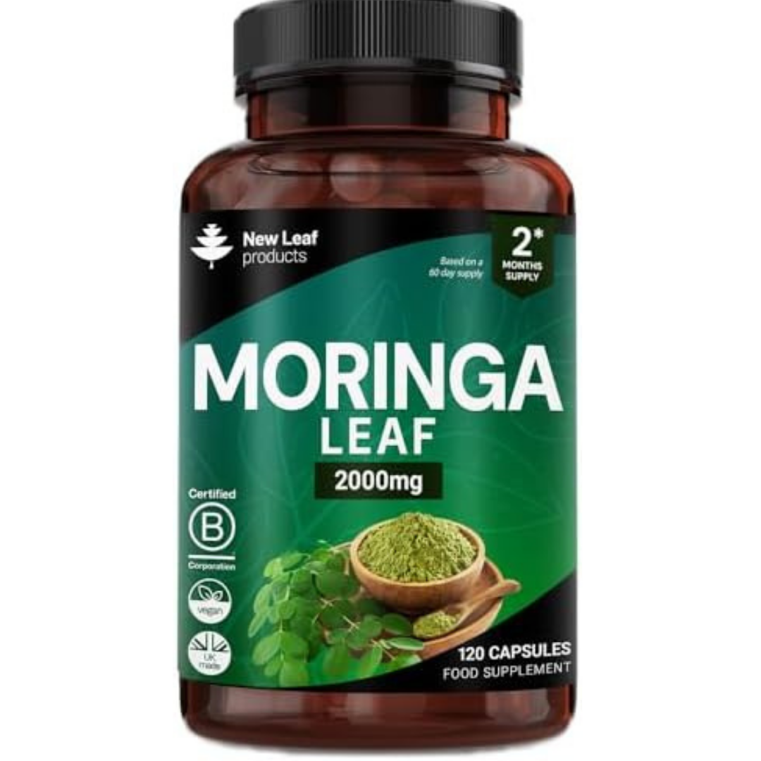 Moringa Leaf Capsules - High Strength Moringa Capsules 2000mg - Pure Vegan Extract & Powder - 120 (Two Months Supply) Enriched with Black Pepper by New Leaf